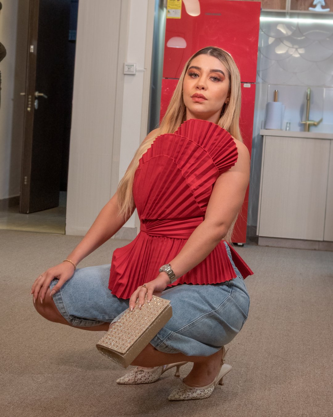 Es puro impacto y feminidad. Su diseño estructurado realza el busto con un acabado delicado, mientras los tablones aportan volumen sutil y un toque moderno que eleva cualquier look. El tono rojo vibrante agrega fuerza, seguridad y presencia, convirtiéndola en una pieza protagonista ideal para noches especiales o outfits chic donde quieras destacar con estilo sin esfuerzo.