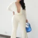 ENTERIZO DE PANTALÓN MANGA LARGA CON CAÍDA EN BUSTO TALLA ÚNICA COLOR BLANCO