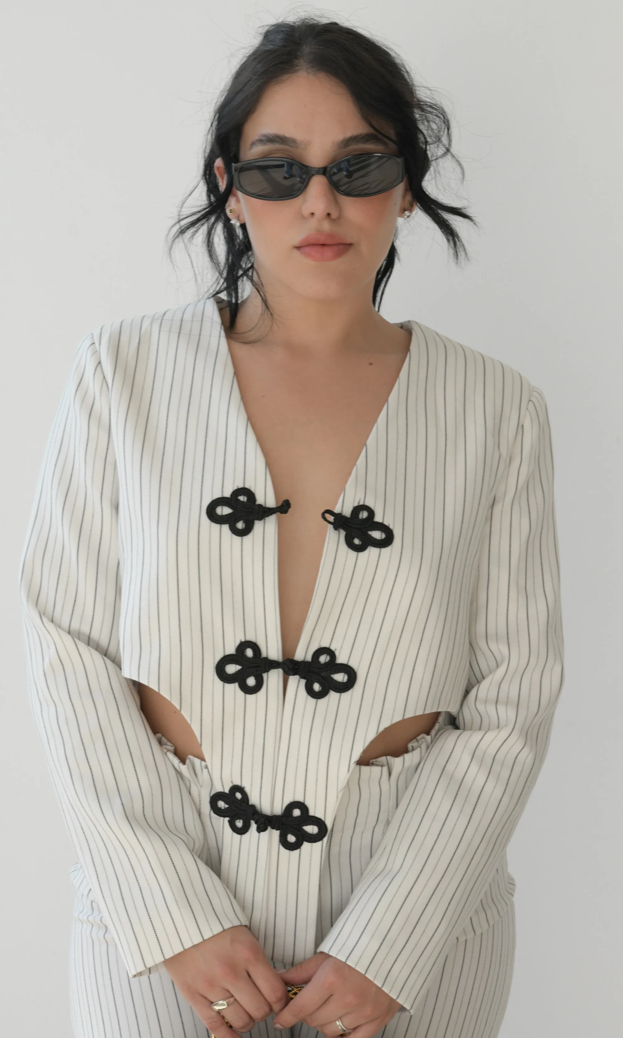 SET CHALECO MANGA LARGA Y SHORT COLOR BLANCO DE RAYAS