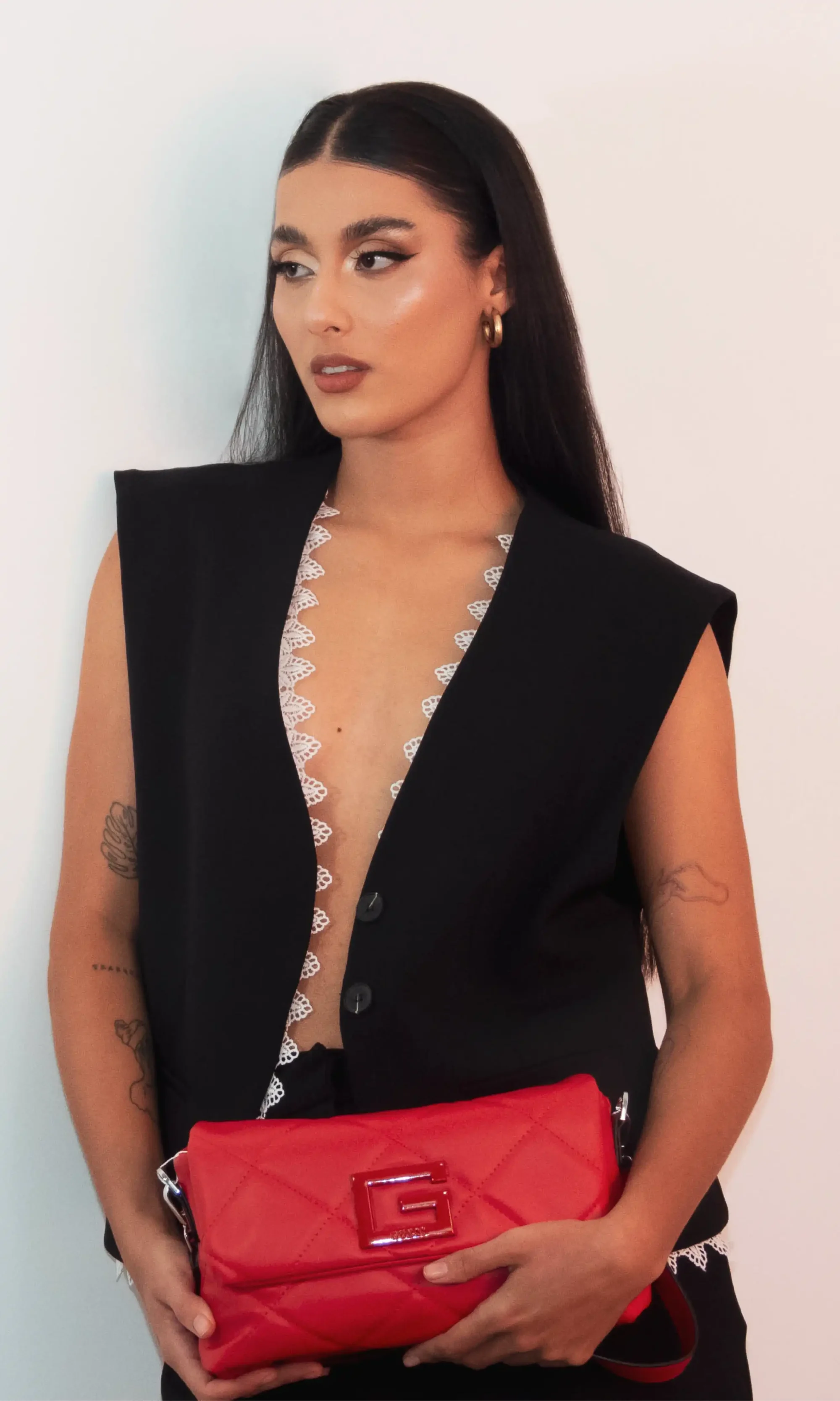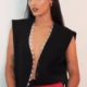 Set de Pantalón Largo y Chaleco con Encaje Blanco Color Negro