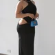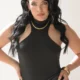VESTIDO CUELLO ALTO SATINADO EN LA PARTE INFERIOR